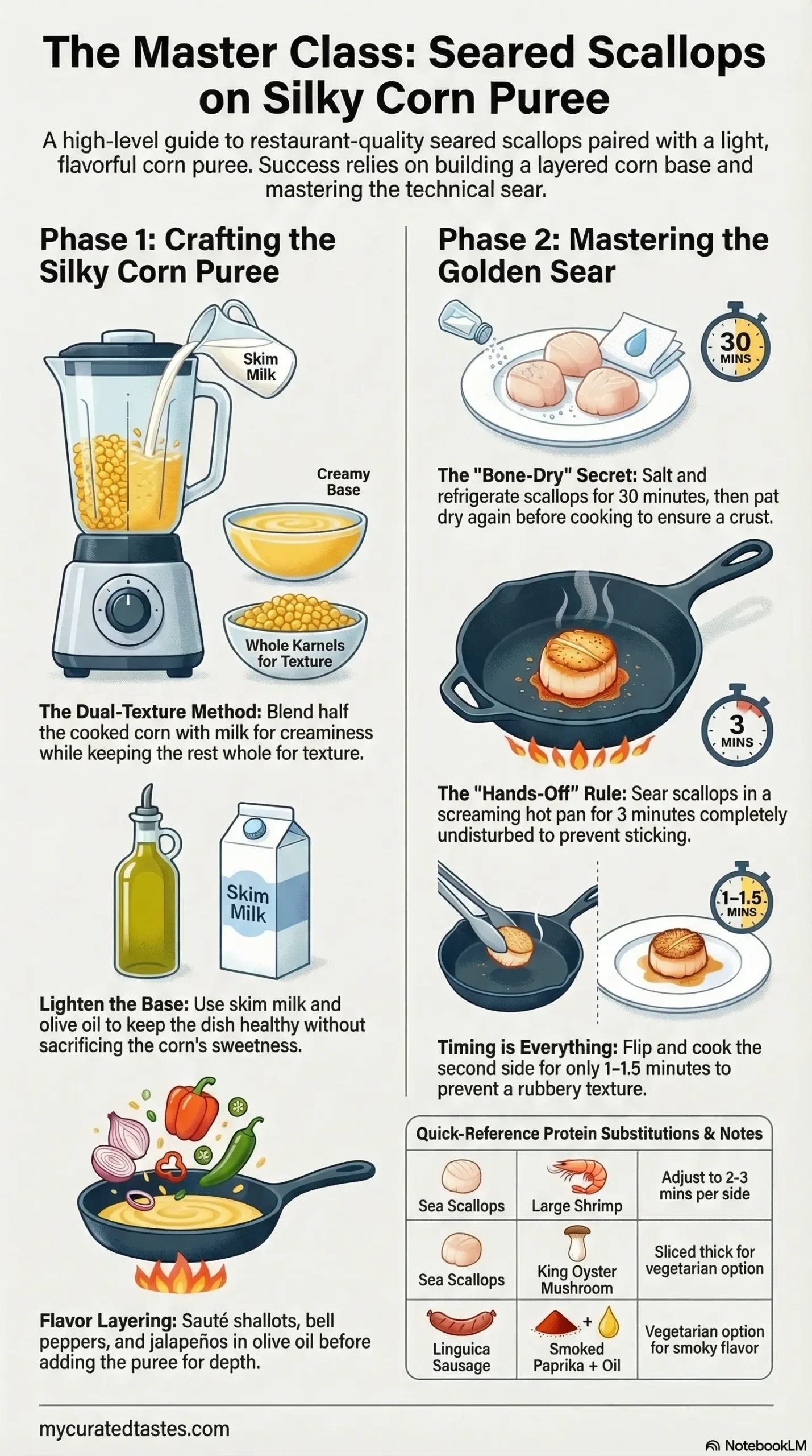 How to make seared scallops on corn puree